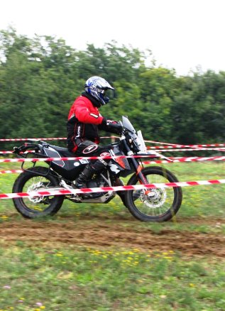 intrigante, che buttare giù in curva un' autentica moto da fuoristrada sul