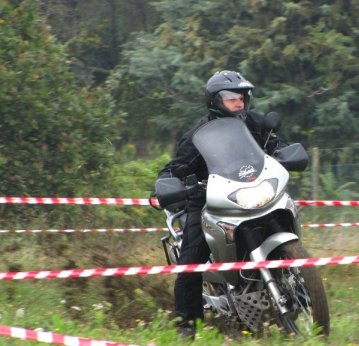 Durante la notte aveva piovuto e sul bagnato non mi sento a mio agio, faccio un giro e poi mi fermo, la moto va dove vuole e non riesco a controllarla come vorrei.
